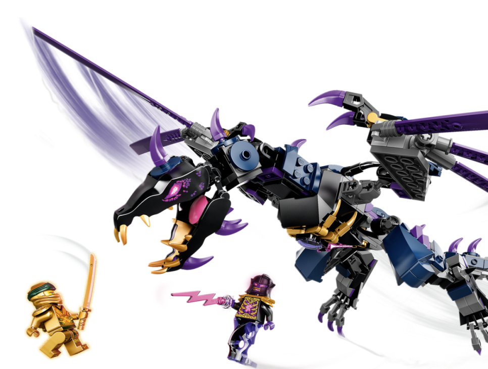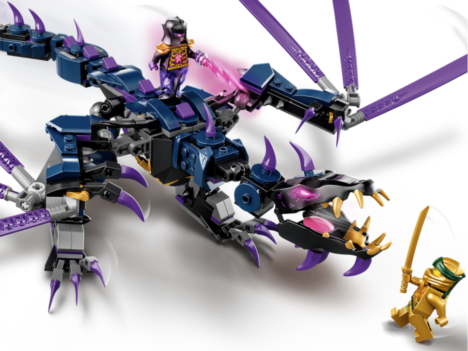 멋진 자유관절 드래곤이 등장하는 레고® 닌자고® 레거시 오버로드 드래곤(71742) 플레이 세트를 이용해 시간 가는 줄 모를 공중 전투 이야기를 펼쳐보세요.