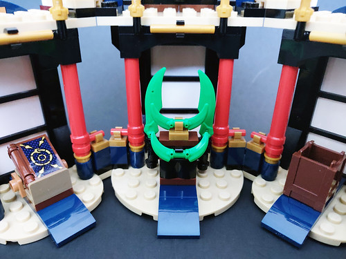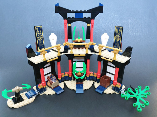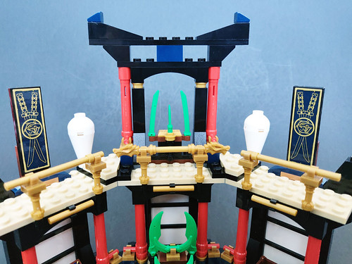 닌자사원의 경우 레고 오버워치 한조vs겐지 75971과 비슷하지만 2개의 층로 구성된 3개의 섹션이 있습니다. 중간 부분에는 옥의 단검으로 채워진 상단과 하단에는 무기 스탠드가 있습니다.