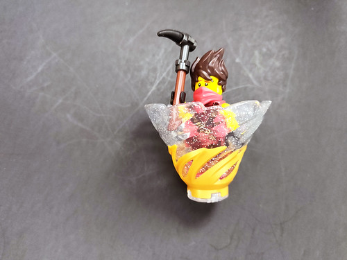 아이조는 레고 닌자고 볼더 블래스터 71736에 있는 것과 똑같은 미니피규어 입니다. 몸통 뒷면에는 아나콘드라이 기호가 있는 검은 색 조끼를 입고 있습니다. 아이조의 문신을 한 머리의 오른쪽 눈을 보면 그의 맹목적인 충성심을 엿볼 수 있습니다. 아이조의 무기는 뼈 도끼입니다.