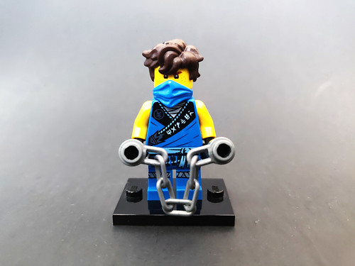제이는 닌자고 문자로 "마스터"라고 적힌 파란색 토너먼트 의상을 입고 있습니다. 몸통 뒷면에는 번개 기호가 표시됩니다. 그는 한쪽 얼굴에는 긴장된 미소를, 다른 한쪽 얼굴은 화난 표정을 보여주는 양면 머리를 갖니고 있습니다. 제이의 무기는 눈차크 입니다.