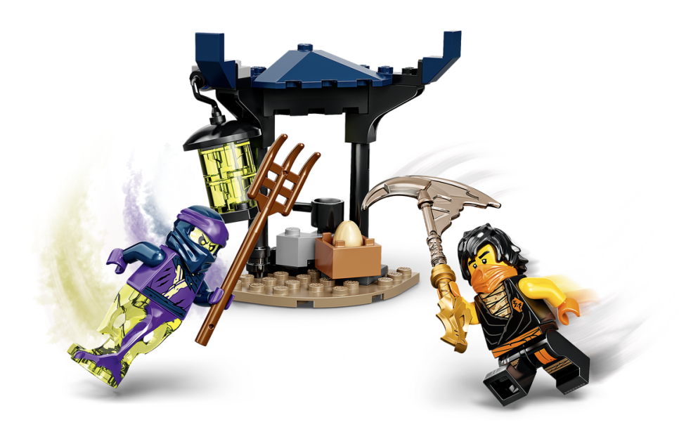 닌자 전투의 무대가 되어줄 브릭 조립식 장터와 콜이 적수를 물리칠 때 사용할 회전식 전투 플랫폼이 들어 있습니다.
